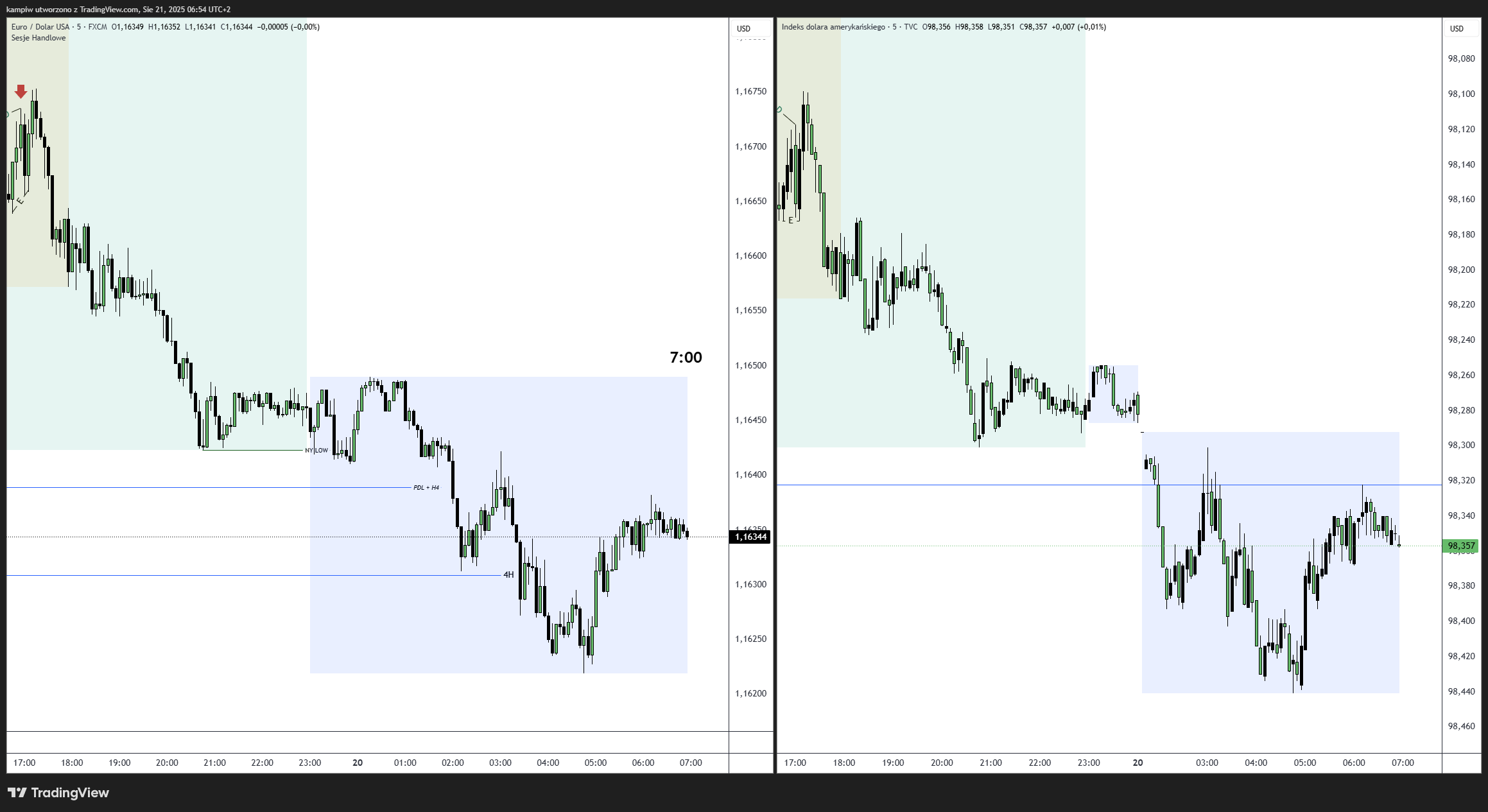 Wczorajszy dzień był spadkowy. Dzisiaj bias spadkowy, ponieważ nie wystąpiło SMT na reversal ALE Azja zabrała PDL i 2xH4 więc Long równiez wchodził w grę na potencjalne odwrócenie się (przynajmniej chwilowe). Tak, też się stało, pojawiło się SMT(D) wzrostowe na London open, co wykorzystałem i zagrałem longa, mając zielone światło na pozycje long jak i short.